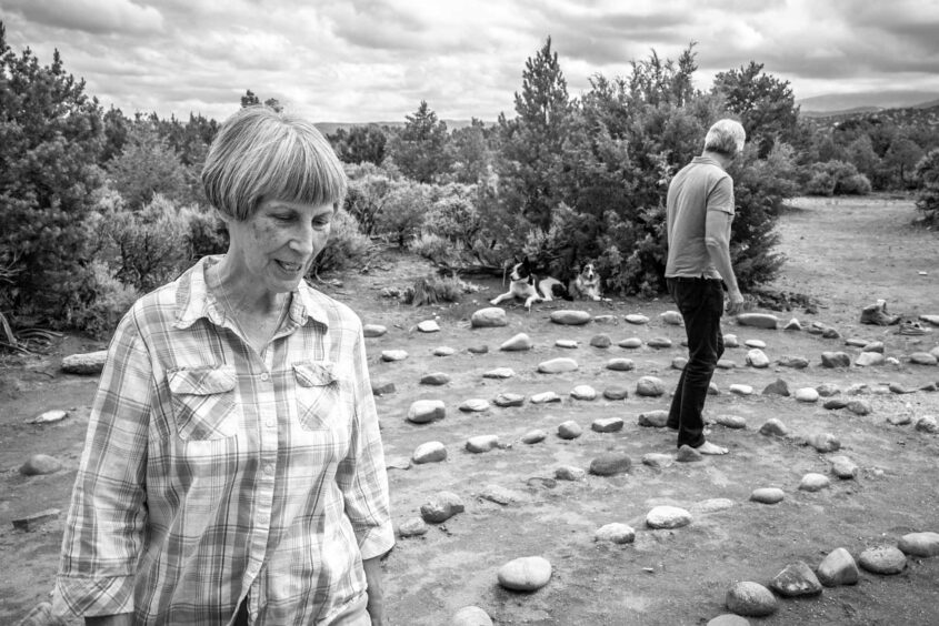 Several energies worked together throughout the day: Victor, Steven and myself, the spaces we used inside the house, and the space outside - the sky and sun, the mountains, the land and its plants and rocks, the labyrinth and the Grief Garden. And last but not least, their two soulful dogs.